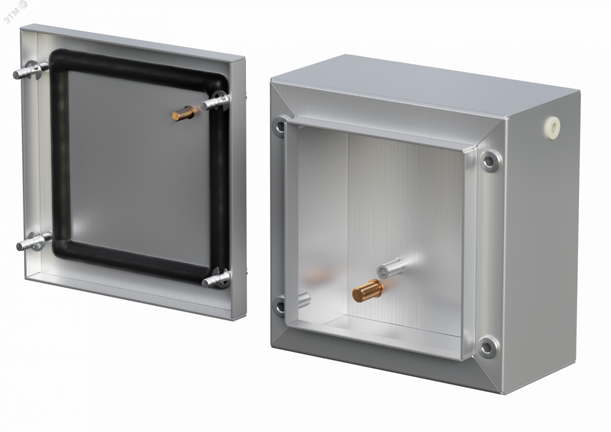 Взрывозащищенная оболочка из нержавеющей стали AISI 304 для индивидуальной комплектации, типа 'Бокс', размерами 150х150х90 мм, применяется для собственного изготовления взрывозащищенных клеммных коробок Ex e, Ex tb, Ex i, постов и шкафов управления Ex de, Ex tb, Ex i