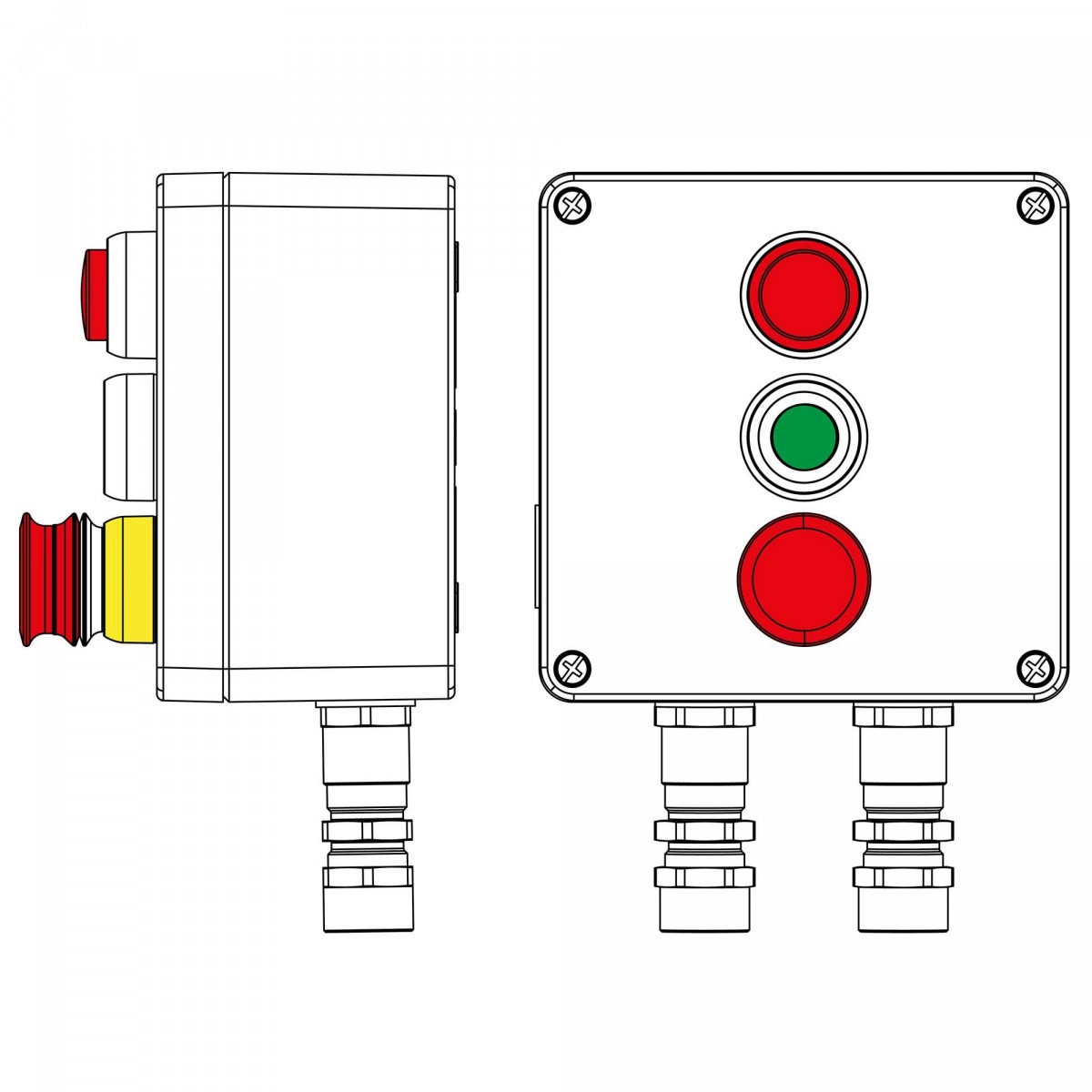 Взрывозащищенный пост управления из алюминия CPE-A-17-(1xLR(220)-1xP1G(11)-1xP3E(11))-2xKA2MHK(C)1Ex d e IIC Т5 Gb / Ex tb IIIC T95°C Db IP66