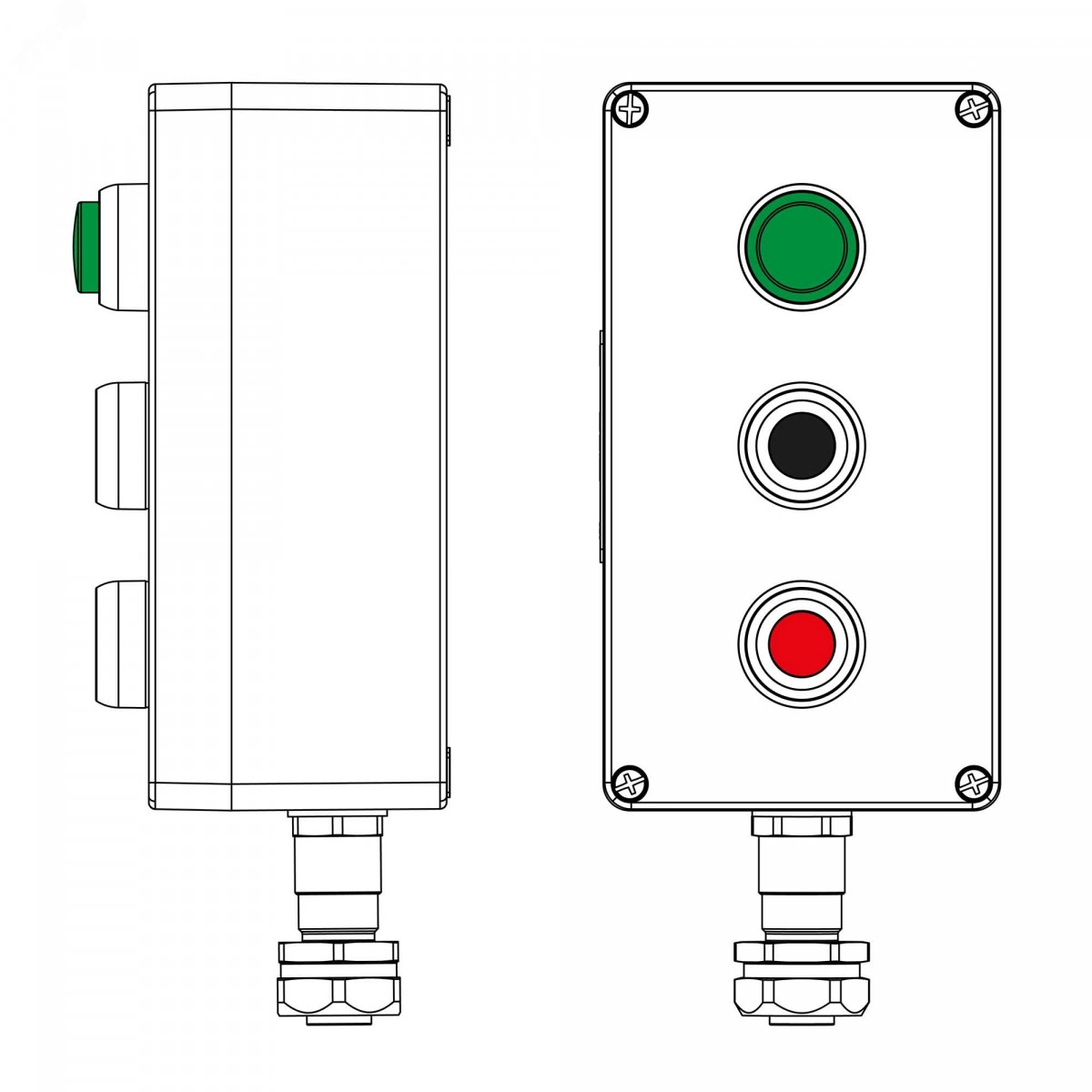 Взрывозащищенный пост управления из полиэстера CPE-P-04-(1xLG(250)-1xP1B(11)-1xP1R(11))-1xKAEPM2MHK-20(C)1Ex d e IIC Т5 Gb / Ex tb IIIC T95°C Db IP66/КЗ