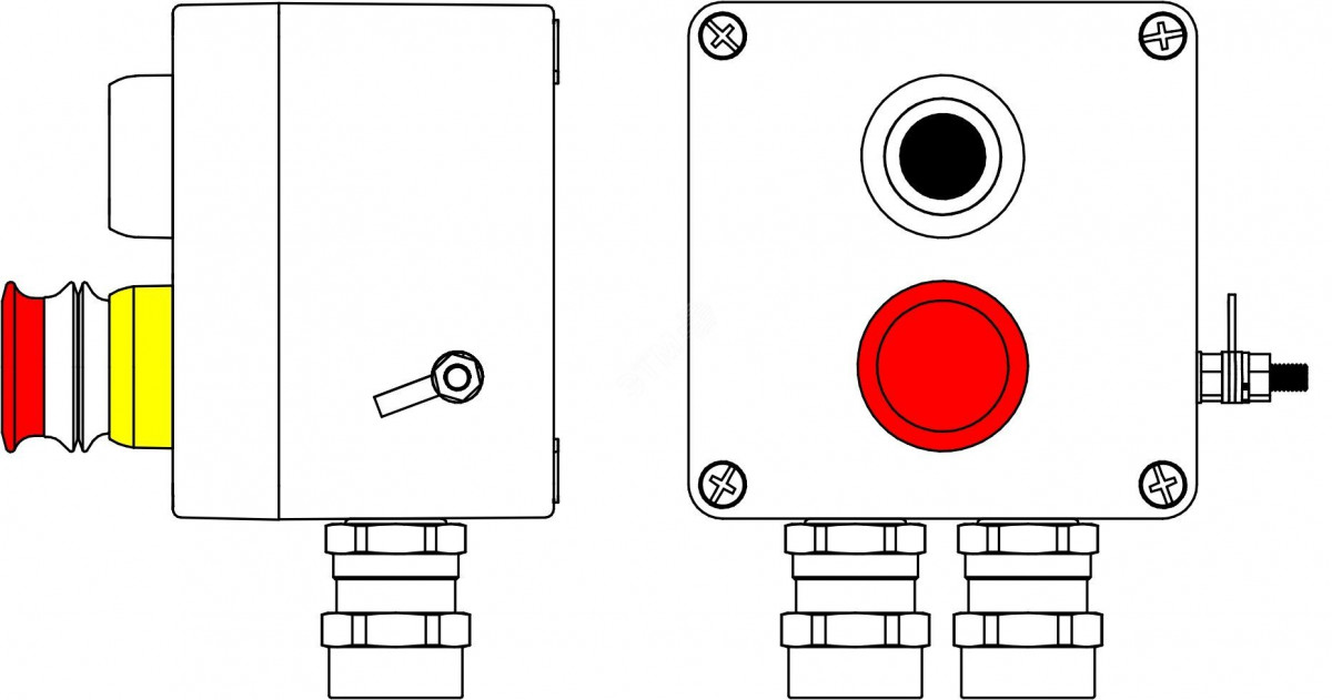 Взрывозащищенный GRP корпус 120x120x90мм (1Ex d e IIC T6 Gb X / Ex tb IIIB T80градусовC Db X / IP66) Температурный режим Т6 40градусовC Кольца заземления Зажим заземления Количество элементов управления- Контактный блок 1NC/1NO + Аварийная кнопка P3E Красная 1 шт. Контактный блок 1NC/1NO + Кнопка P1 Черная 1 шт. Количество клемм- Вводы Сторона C- Взрывозащищенный кабельный ввод AAS под бронированный кабель, одно уплотнение M20х1,5 D5,5-13мм. Никелированная латунь. IP66/68 2 шт.