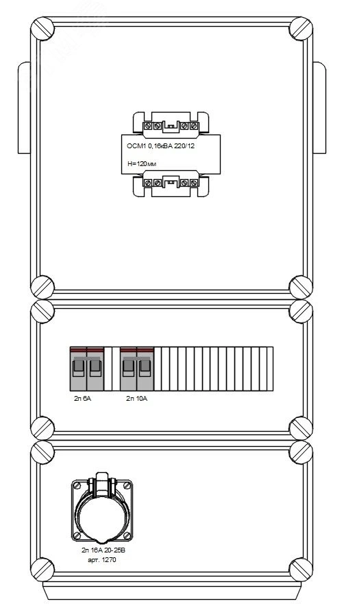 Ящик с понижающим трансформатором ЯТП 0.25кВА 220/24В 2 автомата