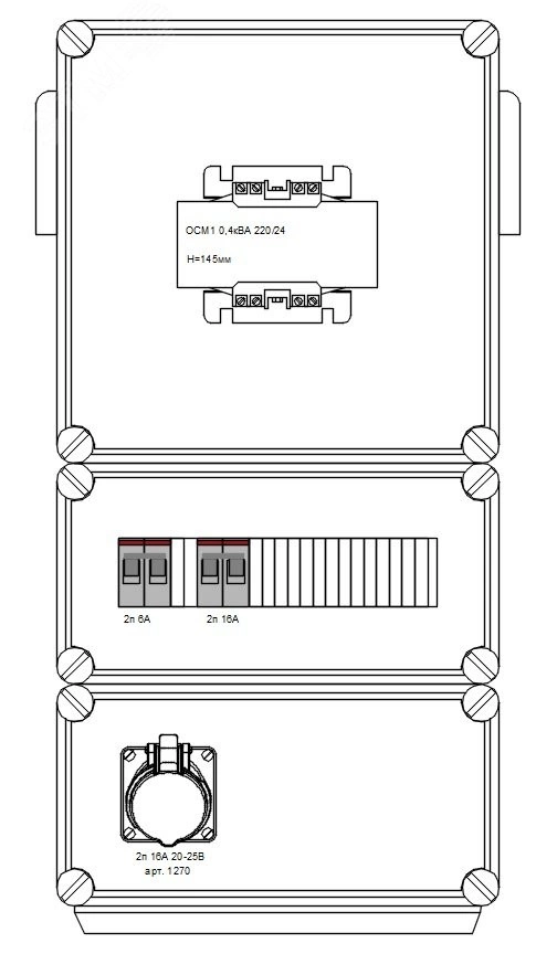 Ящик с понижающим трансформатором ЯТП 0.25кВА 220/24В 2 автомата