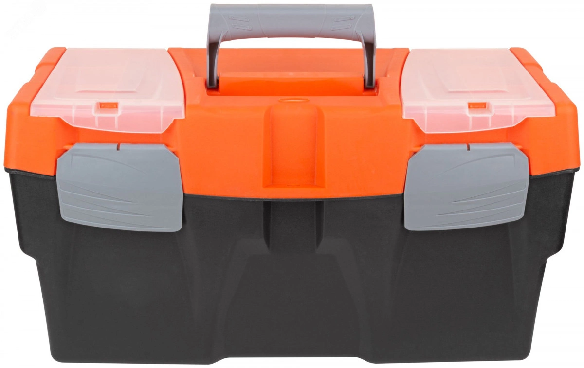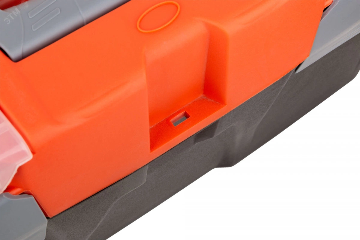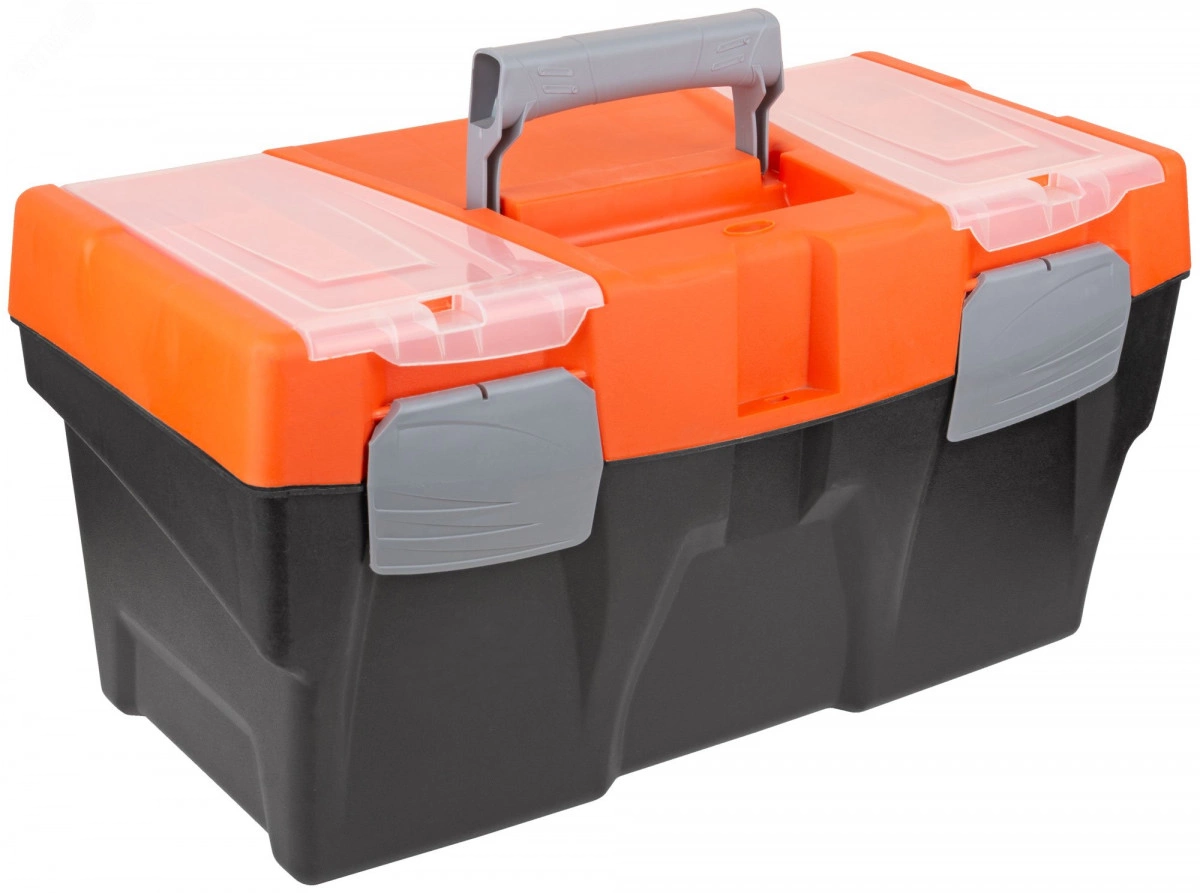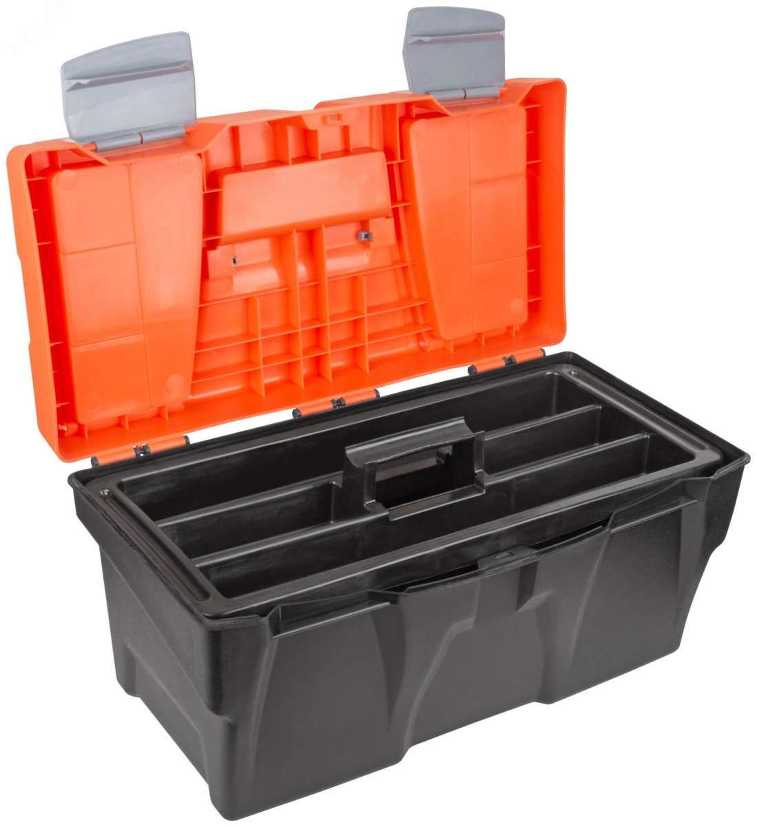 Съемный лоток дают возможность организованно хранить мелкий инструмент и крепеж|Рукоятка в крышке повышает удобство при транспортировке|Корпус из замки изготовлены из морозостойкого прочного пластика