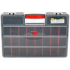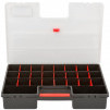 Способствует организованному хранению большого количества мелких деталей и крепежа|Пластиковые замки надежно запирают органайзер и предотвращают непреднамеренное раскрытие|Прозрачная крышка позволяет видеть расположение вещей внутри|Эргономичная ручк