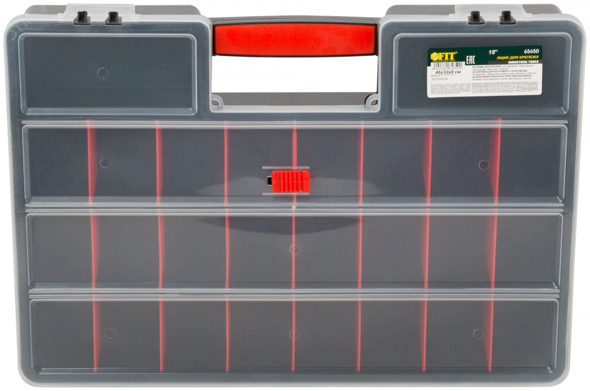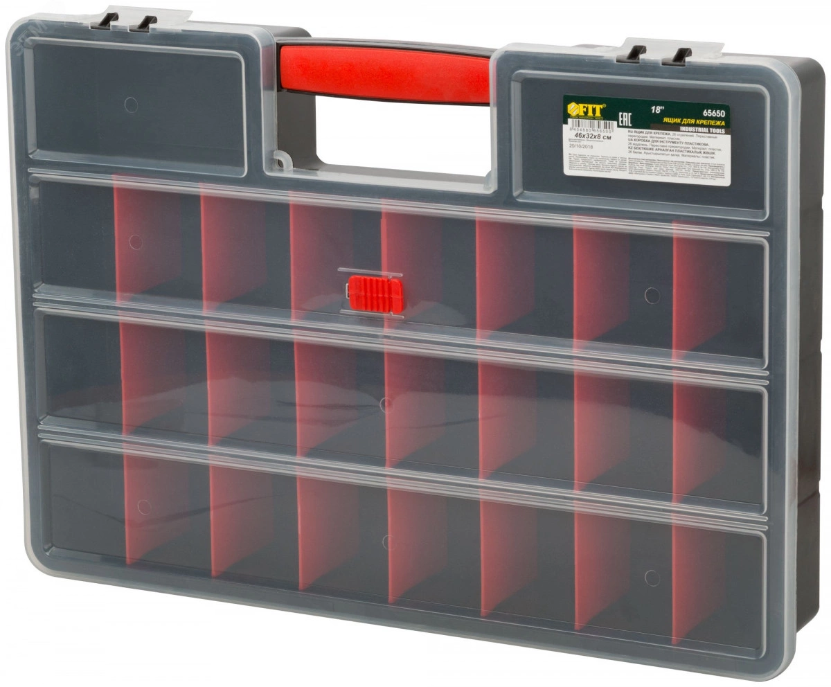 Пластиковый органайзер с крышкой FIT РОС удобен для хранения клемм, саморезов, стяжек, термоусадки и других мелочей, которые так нужны электромонтажнику. В органайзере 26 отделений. Перегородки внутри органайзера можно переставить или убрать при необходимости. Расходники можно рассортировать по виду работ, а органайзеры подписать — тогда точно всё будет под рукой. Органайзер надежно закрывается на два замка.