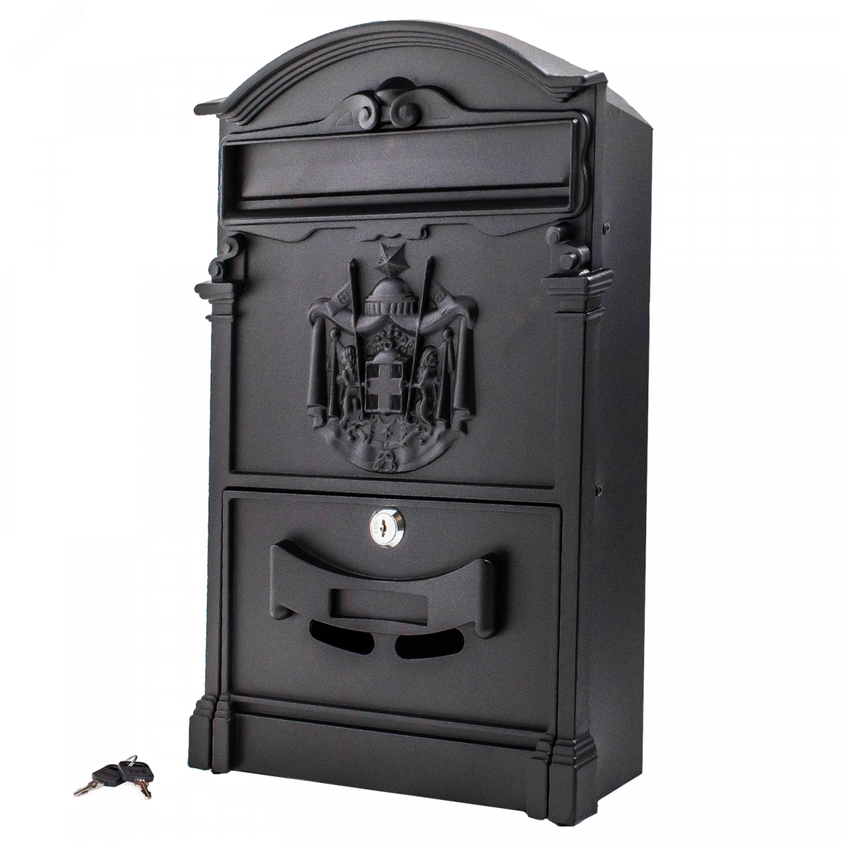 Ящик почтовый индивидуальный. Материал - сталь, алюминий. Цвет - черный. Размеры - 405х255х75мм. Замок с 2 ключами.