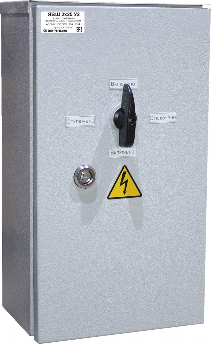 Полное описание: ЯВШ 2х25 У2, 2 полюса, 25А, IP54, ящик с пакетным выключателем и разъёмом (ЭТ)