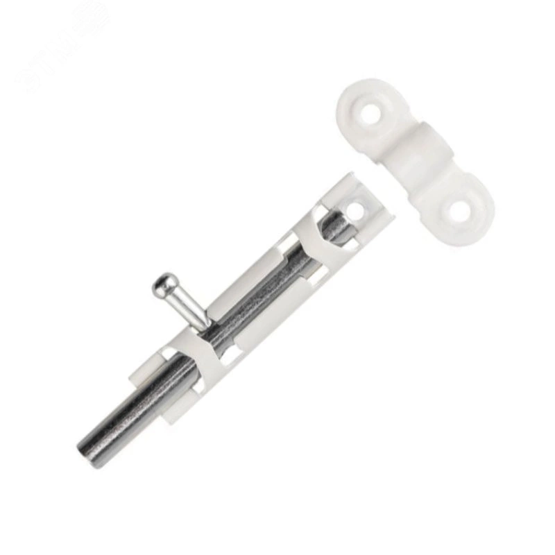 Задвижка накладная ЗТ 82х14,5 круглый ригель (D8мм, L104мм) бел. (1 шт) - пакет Tech-Krep