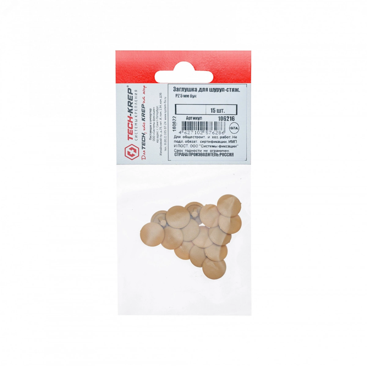 Заглушка для шуруп-стяж. PZ 5 /HEX 5 мм бук (15 шт) - пакет Tech- Krep