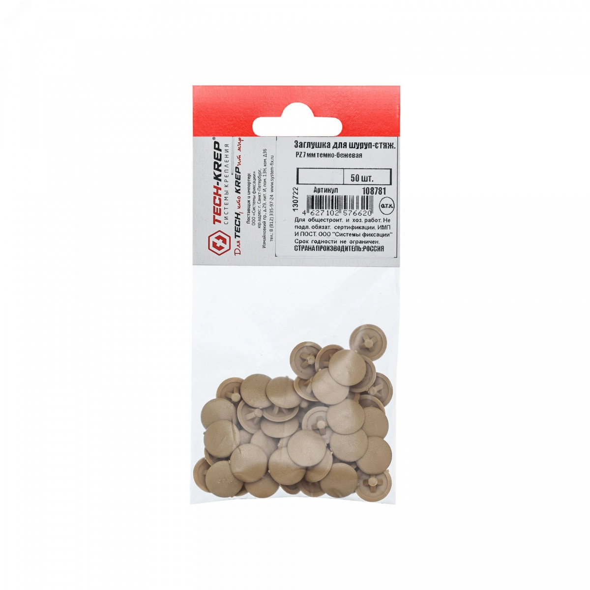 Заглушка для шуруп-стяж. PZ 5 /HEX 5 мм тёмно-бежевая (15 шт) - пакет Tech- Krep
