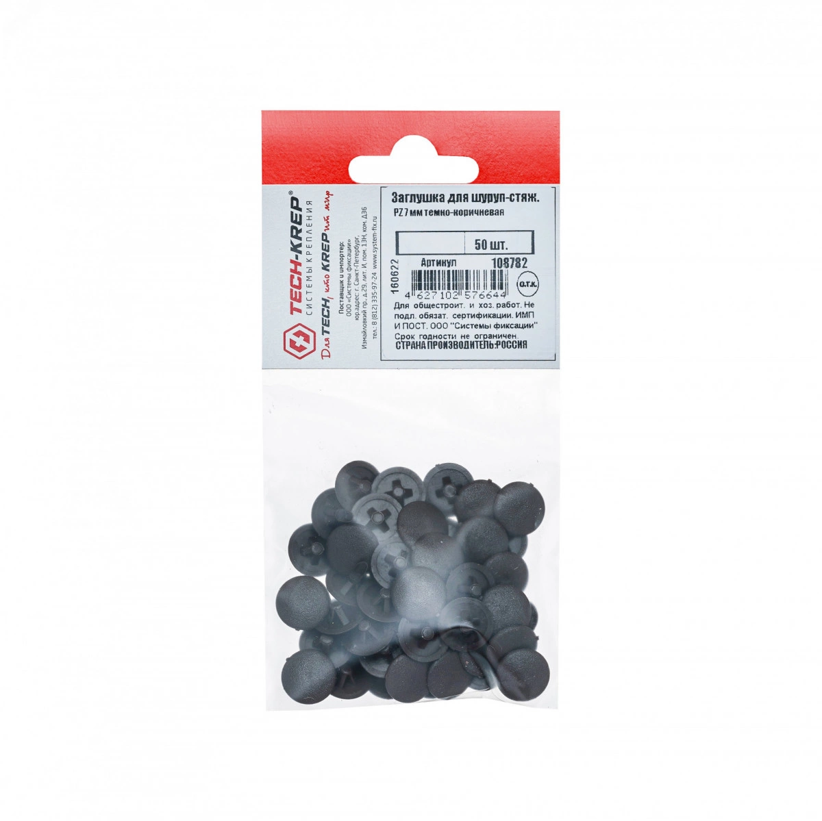 Заглушка для шуруп-стяж. PZ 5 /HEX 5 мм тёмно-коричневая (50 шт) - пакет Tech- Krep