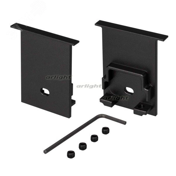 Пара заглушек чёрного цвета (с отверстием) для профиля SL-COMFORT-3551-F BLACK. В комплекте 2 заглушки, 4 винта, шестигранный ключ.