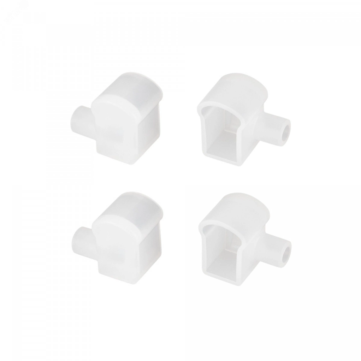 Белые силиконовые заглушки (4 шт.) с отверстием для профиля WPH-FLEX-0817-SIDE. Придают законченный вид светильнику, а также защищают светодиодную ленту от внешних факторов (грязи, пыли и прочего). Отверстие в заглушке позволяет вывести кабель питания светодиодной ленты.