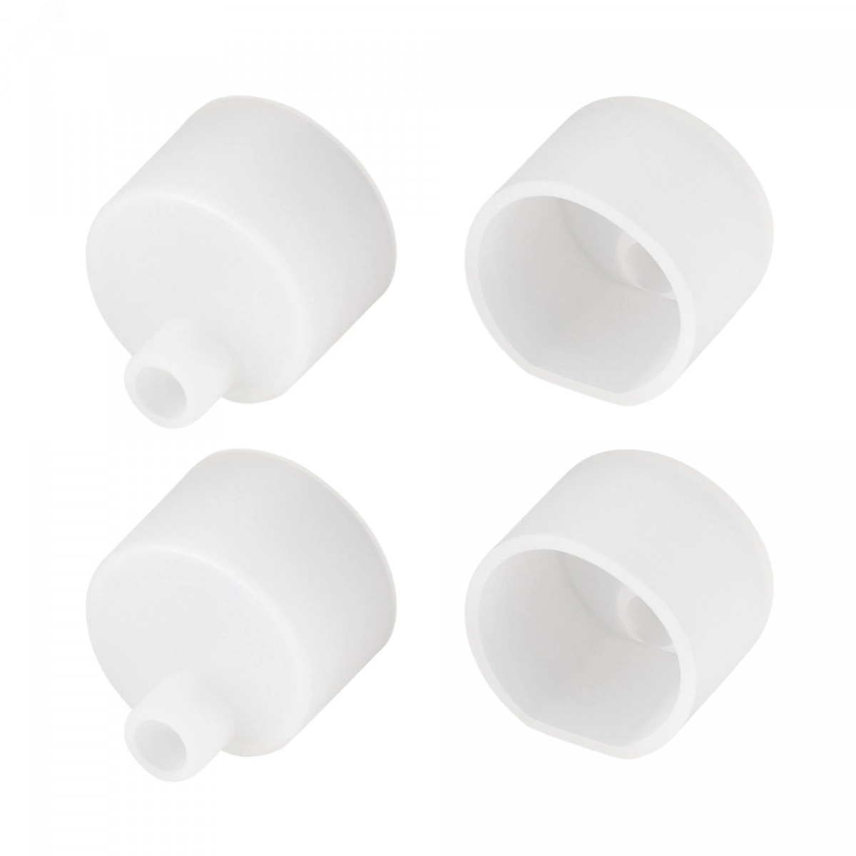 Белые силиконовые заглушки (4 шт.) с отверстием для профиля WPH-FLEX-D20-TOP. Придают законченный вид светильнику, а также защищают светодиодную ленту от внешних факторов (грязи, пыли и прочего). Отверстие в заглушке позволяет вывести кабель питания светодиодной ленты.