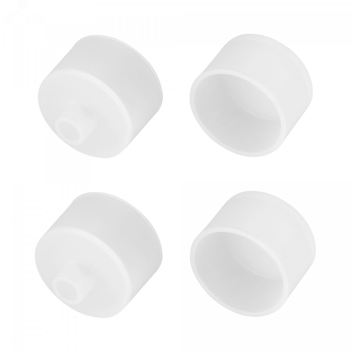 Белые силиконовые заглушки (4 шт.) с отверстием для профиля WPH-FLEX-D22-360deg. Придают законченный вид светильнику, а также защищают светодиодную ленту от внешних факторов (грязи, пыли и прочего). Отверстие в заглушке позволяет вывести кабель питания светодиодной ленты.