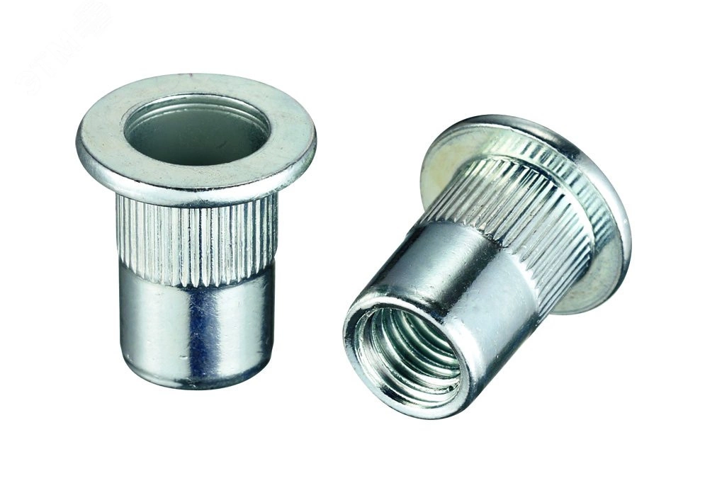 Резьбовая заклепка М3 цилиндрической формы с потайным бортиком и специальной насечкой препятствующей проворачиванию заклепки в процессе эксплуатации.