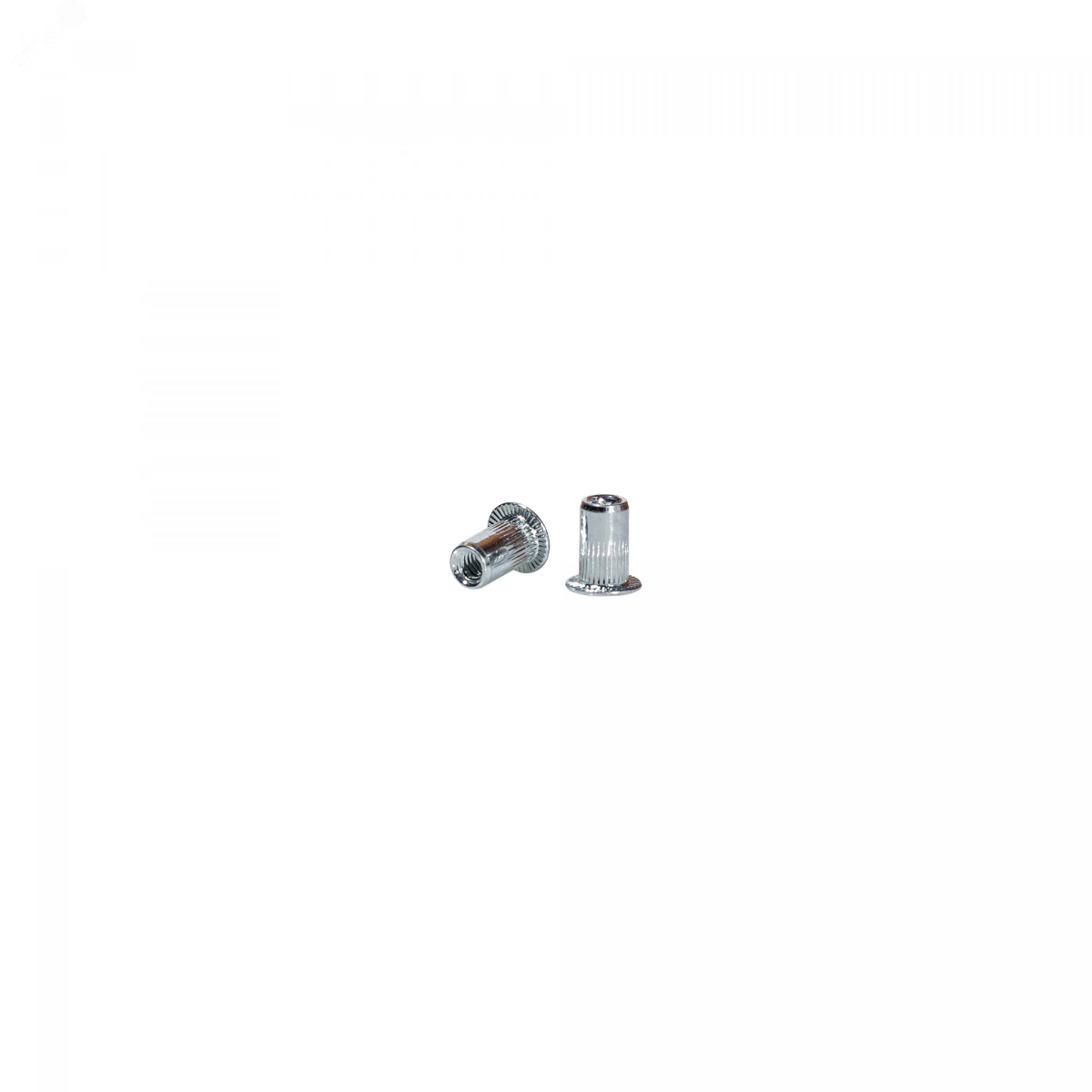 Заклепочная гайка закрытая с насечкой применяется для надежного неразъемного скрепления материалов небольшой толщины и образования в точках крепления глухих отверстий с метрической резьбой для последующего использования со шпильками или болтами.