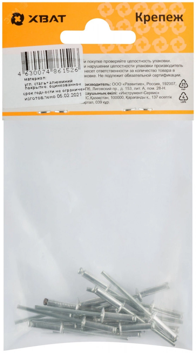 Заклепка вытяжная 3.2х12 алюминиевая (21шт)