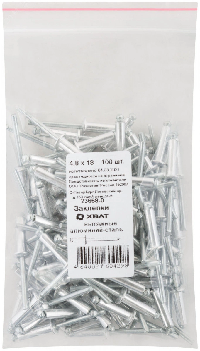 Заклепка вытяжная 4.8х18 алюминиевая (100шт)