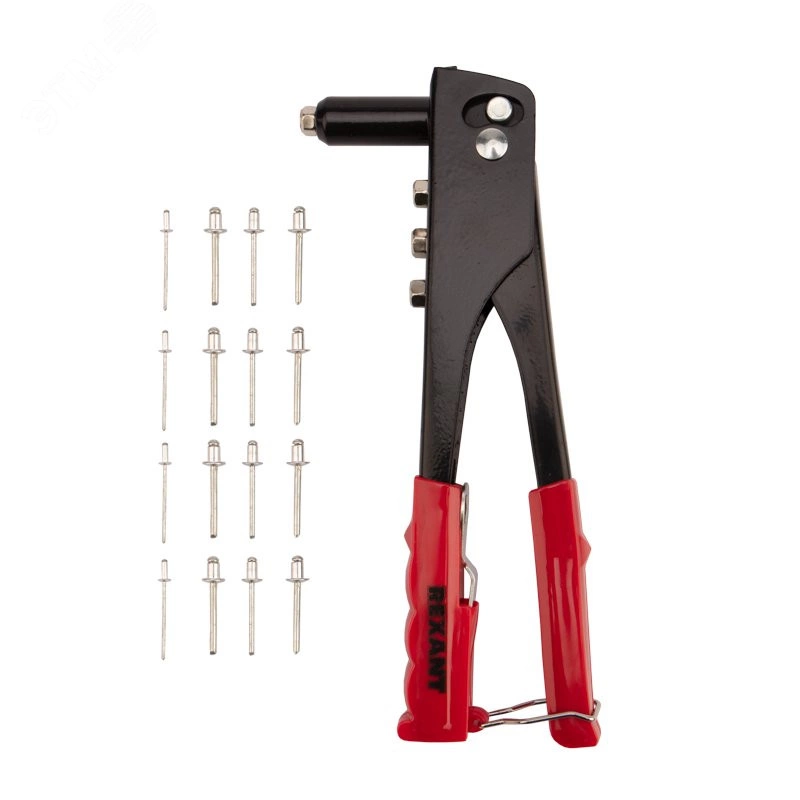 Заклепочник REXANT применяется для скрепления 2 и более деталей в труднодоступных местах. Оснащен 4 насадками разного диаметра под соответствующие заклепки. Подходит для скрепления предметов из металла, древесины, пластмассы, кожи. Для установки вытяжных заклепок необходим доступ к скрепляемым поверхностям лишь с одной стороны, что значительно упрощает работу. Корпус инструмента изготовлен из высококачественной стали, которая обеспечивает прочность инструмента. Резиновые накладки на рукоятках эргономичной формы делают работу более комфортной, а специальная скоба на конце упрощает хранение заклепочника. Набор укомплектован алюминиевыми заклепками.