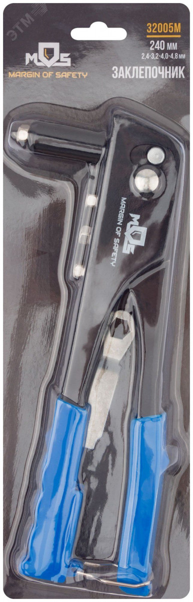 Заклепочник MOS предназначен для создания соединений с помощью алюминиевых вытяжных заклепок. Заклёпочник имеет четыре быстросменные насадки и пружинный рычаг для выброса сердечника. Рукоятки оснащены эргономичными ПВХ-накладками, предотвращающими проскальзывание инструмента во время работы. Заклепочник предназначен для работы с заклепками 2,4, 3,2, 4,0, 4,8 мм.