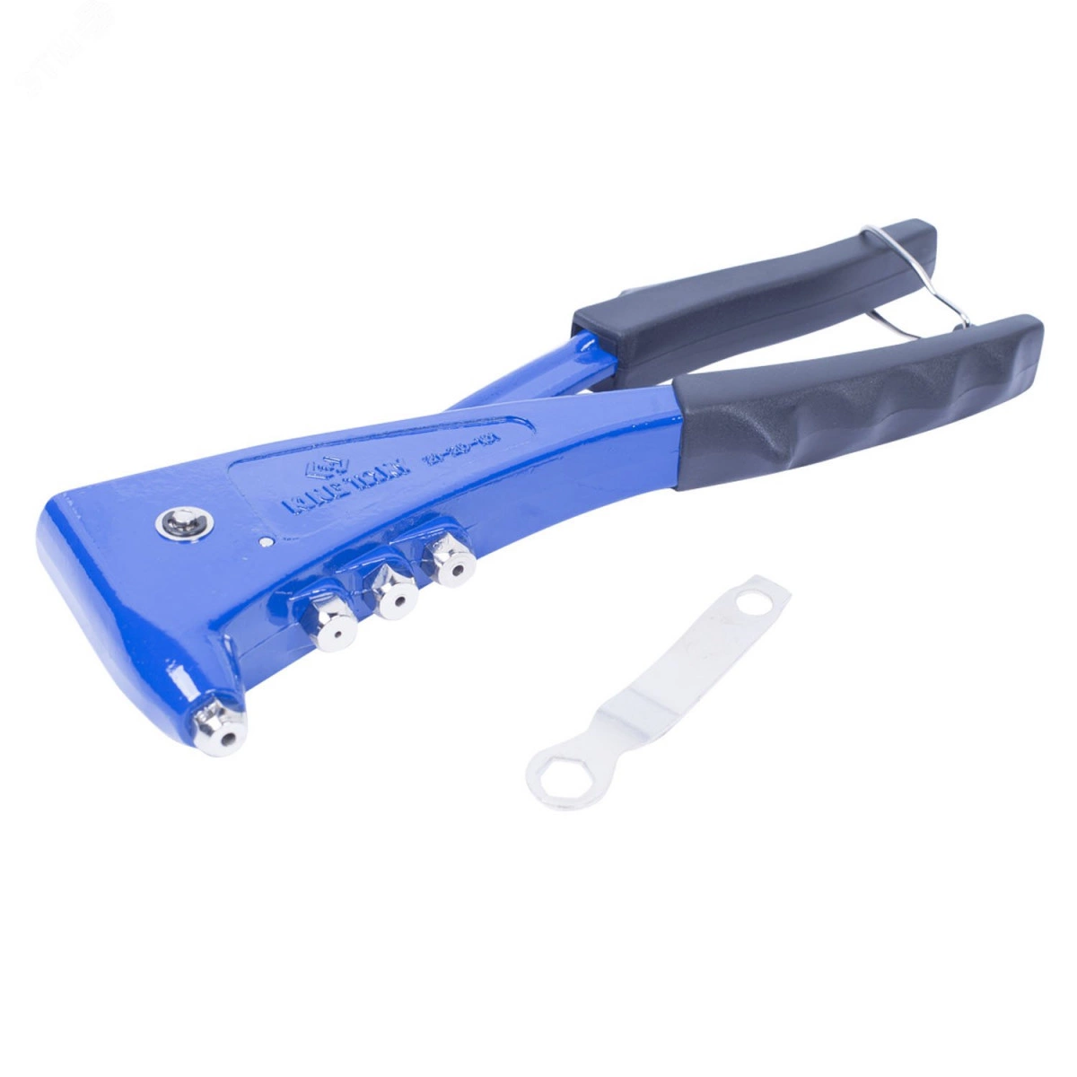 Соединение листового металла, деталей конструкций, а также для выполнение монтажных работ различного характера. В качестве соединительных элементов применяются потайные заклепки вытяжного типа. Заклепочник оснащен зажимными губками из твердосплавной стали, адаптерами для заклепок разного диаметра и специальным ключом