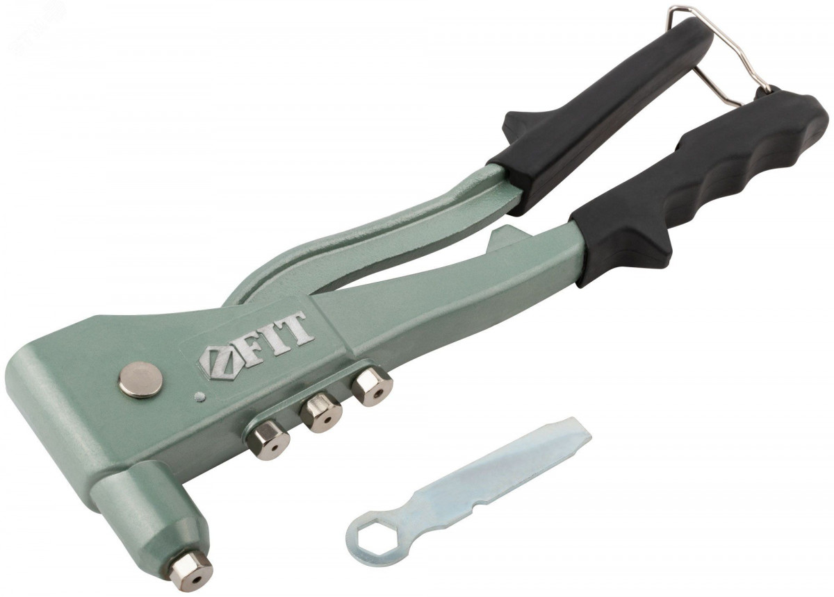 Заклепочник FIT IT Профи предназначен для создания соединений с помощью алюминиевых вытяжных заклепок. Заклёпочник имеет четыре быстросменные насадки и пружинный рычаг для выброса сердечника. Рукоятки из инструментальной стали с виниловым покрытием предотвращают проскальзывание инструмента во время работы. Литой корпус из алюминиевого сплава обладает высокой прочностью. Заклепочник предназначен для работы с заклепками 2,4, 3,2, 4,0, 4,8 мм.