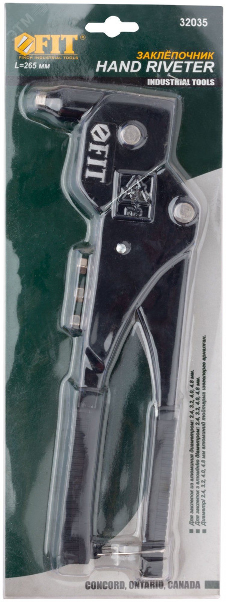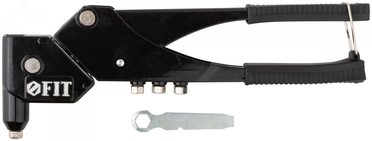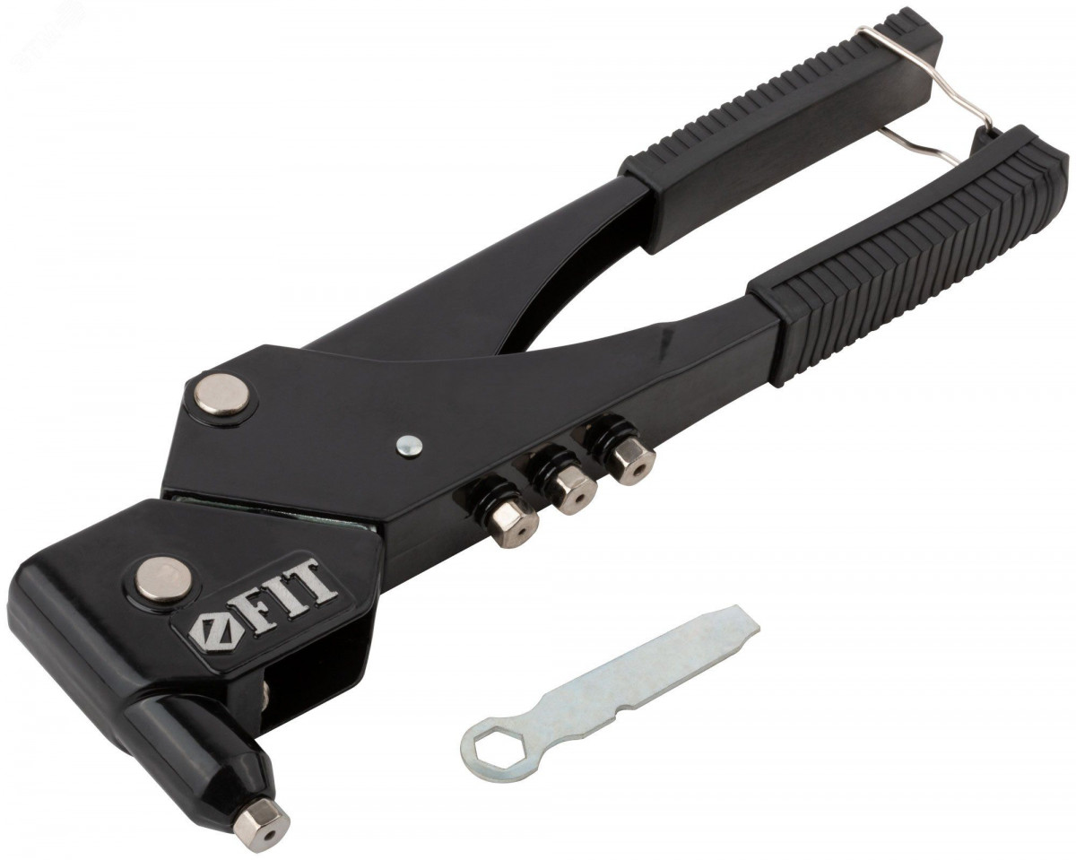 Заклепочник с поворотным механизмом FIT IT позволит вам проводить ремонтные и строительные работы с высокой точностью и качеством! Инструмент предназначен для установки вытяжных алюминиевых заклёпок в труднодоступных местах. Заклепочник имеет четыре быстросменные насадки и пружинный рычаг для выброса сердечника. Рукоятки выполнены из усиленной инструментальной стали с виниловым покрытием, предотвращающим проскальзывание инструмента во время работы. Заклепочник предназначен для работы с заклепками 2.4, 3.2, 4.0, 4.8 мм.
