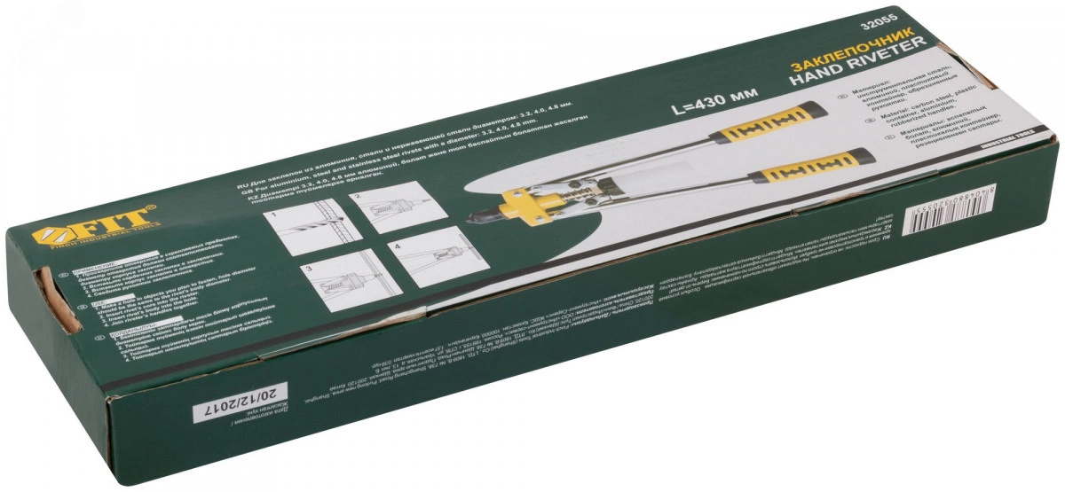 Заклепочник усиленный с длинными ручками, пластиковый контейнер 3.2-4.8 мм (430 мм)