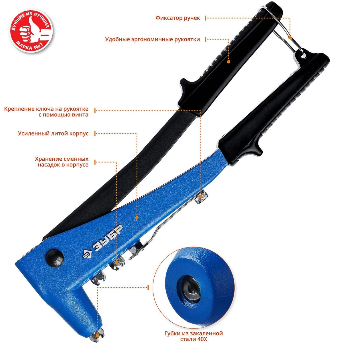 Заклепочник с поворотным механизмом 0-360 гр, литой корпус, Профи 2.4-4.8 мм (280 мм)