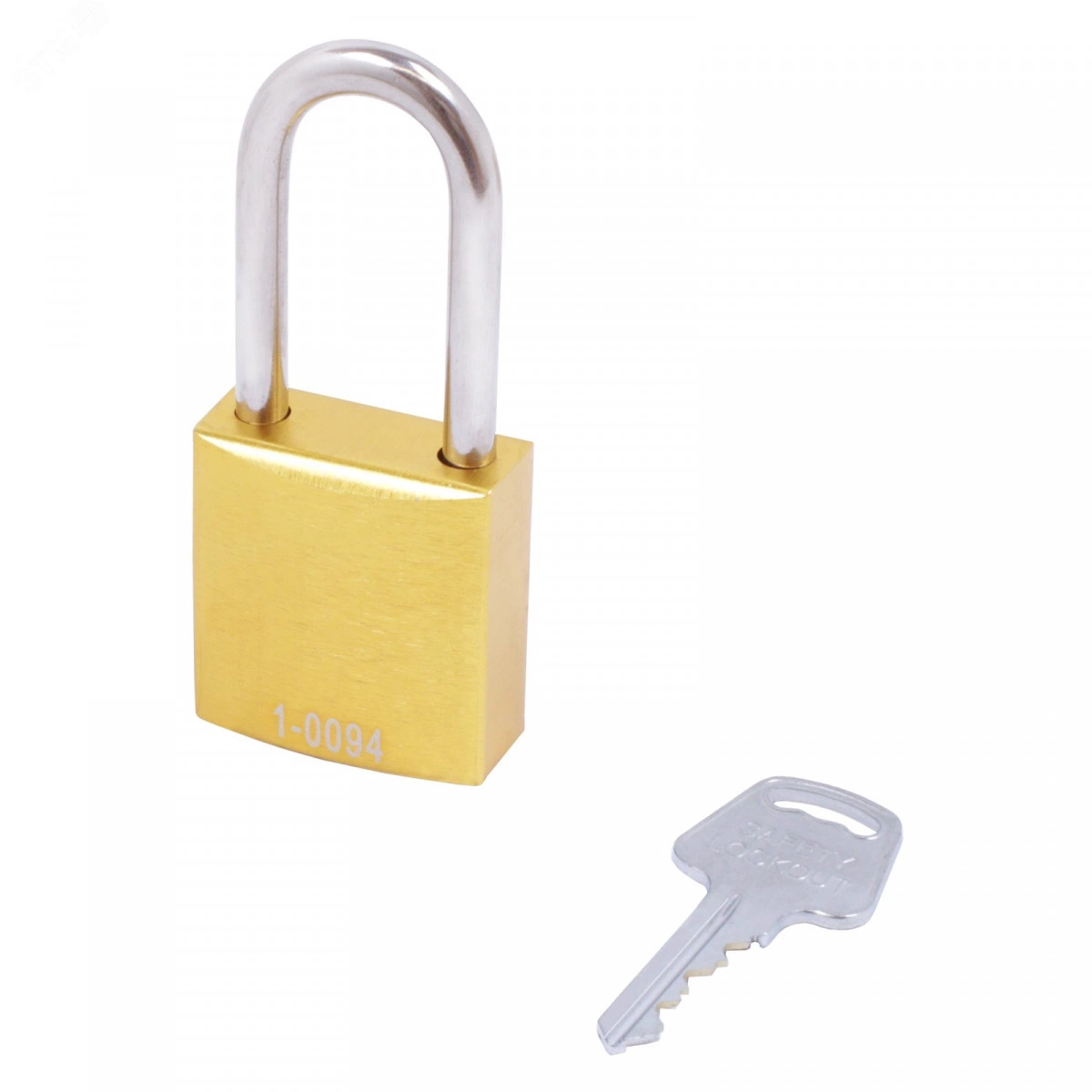 Замок навесной. Алюминиевый корпус, устойчивый к УФ-лучам, химически агрессивным средам и температурам, размер корпуса 40x45 мм (ВxШ), стальная дужка с покрытием из хрома, высота от корпуса до дужки 38 мм, диаметр дужки 6 мм, латунный цилиндр (6 пин) с 1 ключом, цвет корпуса желтый, система ключей KD/KA/MK/KAMK.