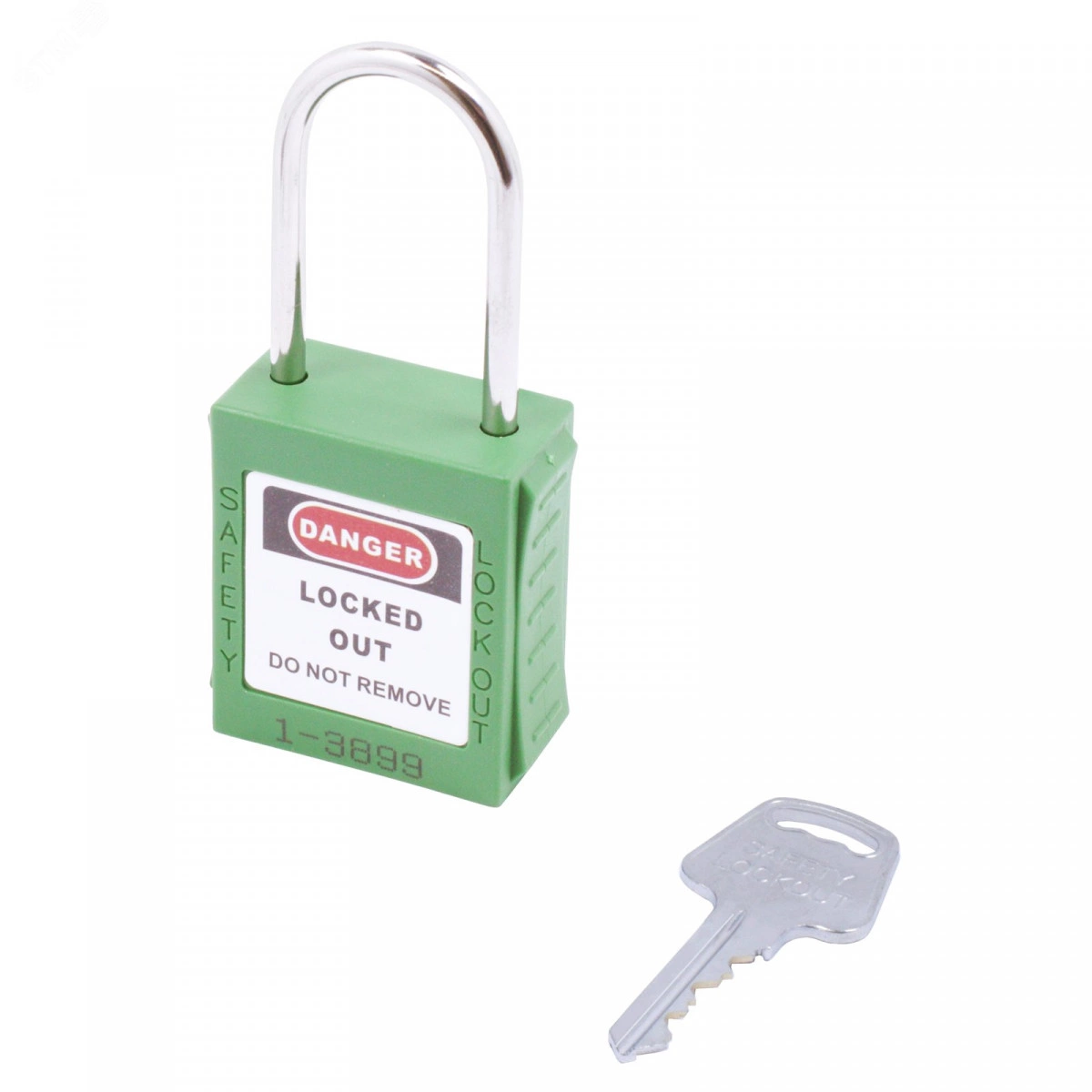Замок навесной. Пластиковый корпус устойчивый к УФ-лучам, химически агрессивным средам и температурам, размер корпуса 45x40x20 мм (ВxШxГ), дужка из нержавеющей стали, высота от корпуса до дужки 38 мм, диаметр дужки 4 мм, латунный цилиндр (6 пин) с 1 ключом, цвет корпуса зеленый, система ключей KA/KD/MK/KAMK.