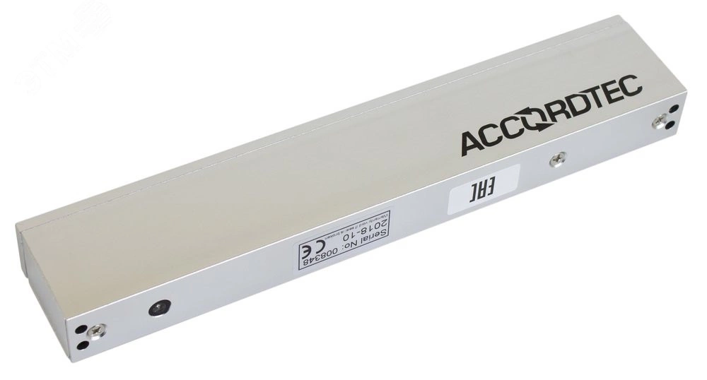 Электромагнитный замок, выполнен в офисном дизайне, предназначен для использования в качестве оконечного устройства в системах контроля и управления доступом, автоматики пожарных и запасных выходов, системах охраны объекта и т.п. Имеет силу удержания равную 280 кг, механический компенсатор эффекта остаточной намагниченности на якоре.