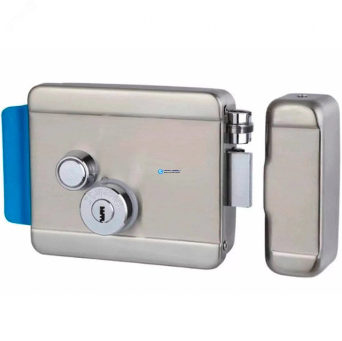 Электромеханический замок, накладной, универсальный. Предназначен для установки на любые типы дверей, подходит для установки на уличную калитку. Материал исполнения - нержавеющая сталь. В комплект поставки входит крепежный комплект, декоративные накладки, личинка замка и комплект ключей.