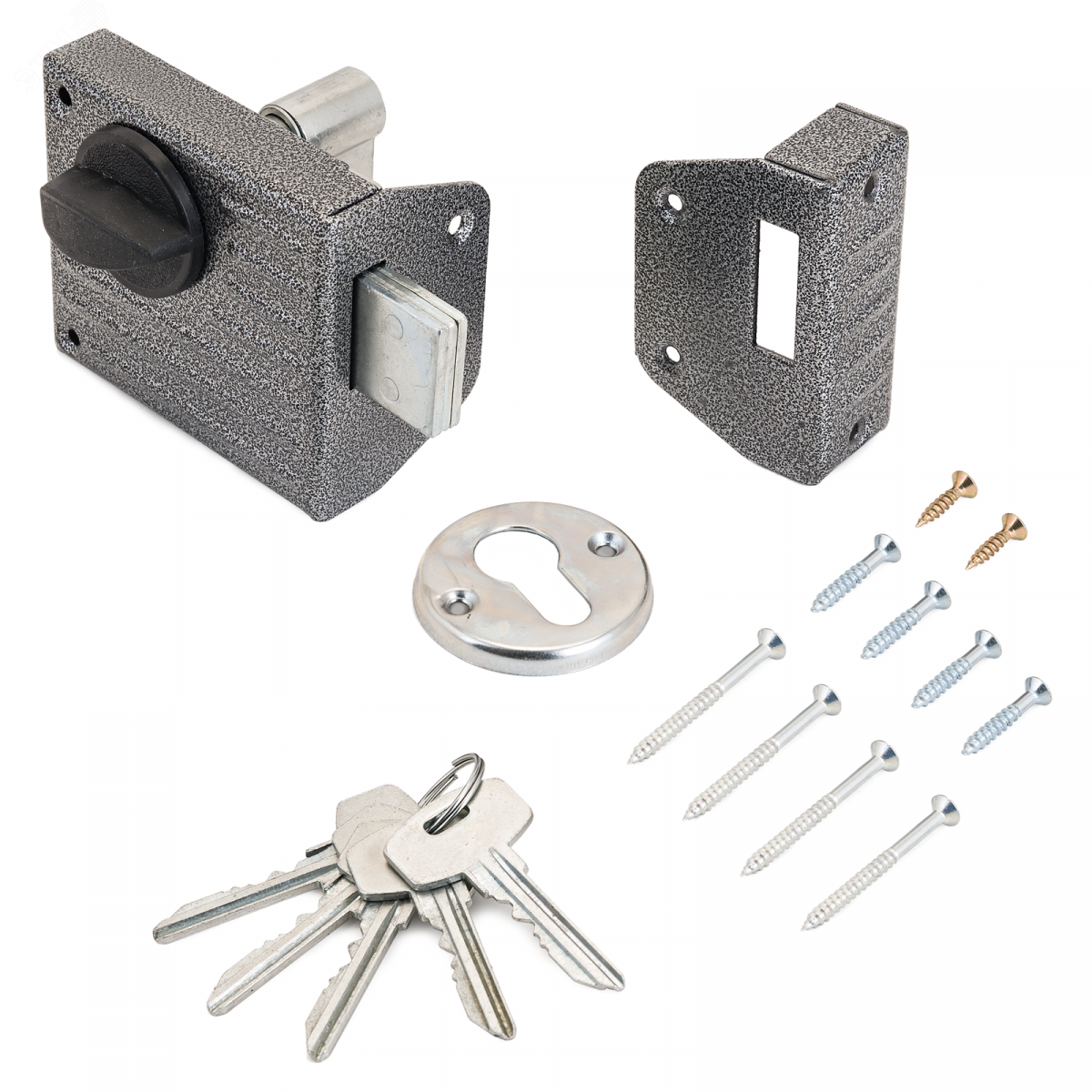 Замок накладной цилиндровый для деревянных дверей, СТАНДАРТ Россия ЗН1-2.1С черный