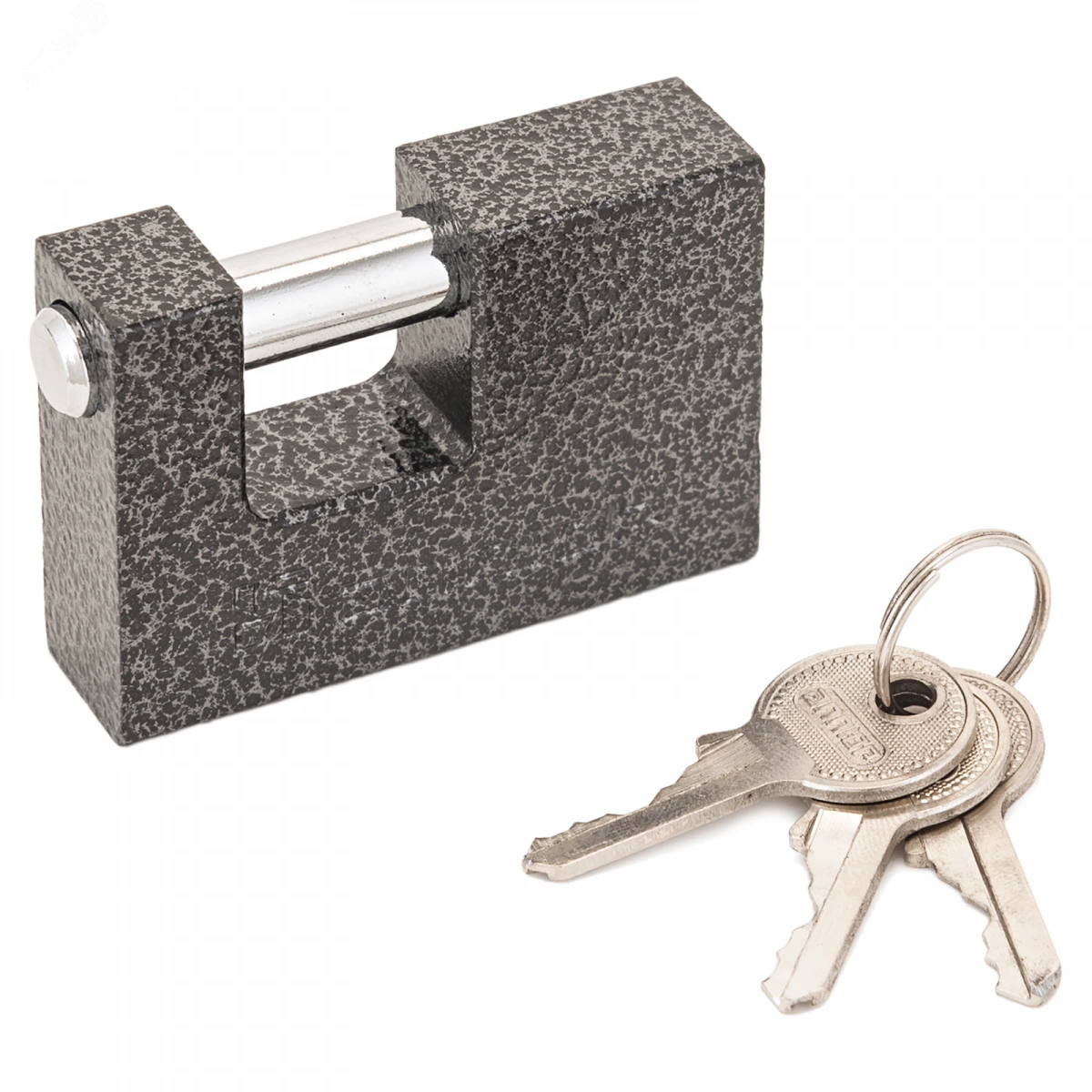 Замок навесной с прямой дужкой серия 'Классика'. Материал корпуса - чугун, полимерное покрытие. Стальная закаленная дужка. Ширина основания корпуса - 71мм, диаметр дужки 12мм. Латунный механизм секрета с английским ключом(3 шт.). Автоматическое закрывание. Упаковка - двойной блистер.