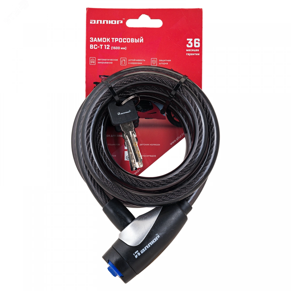 Замок навесной с тросом, АЛЛЮР ВС-Т 12 (1500мм) черный