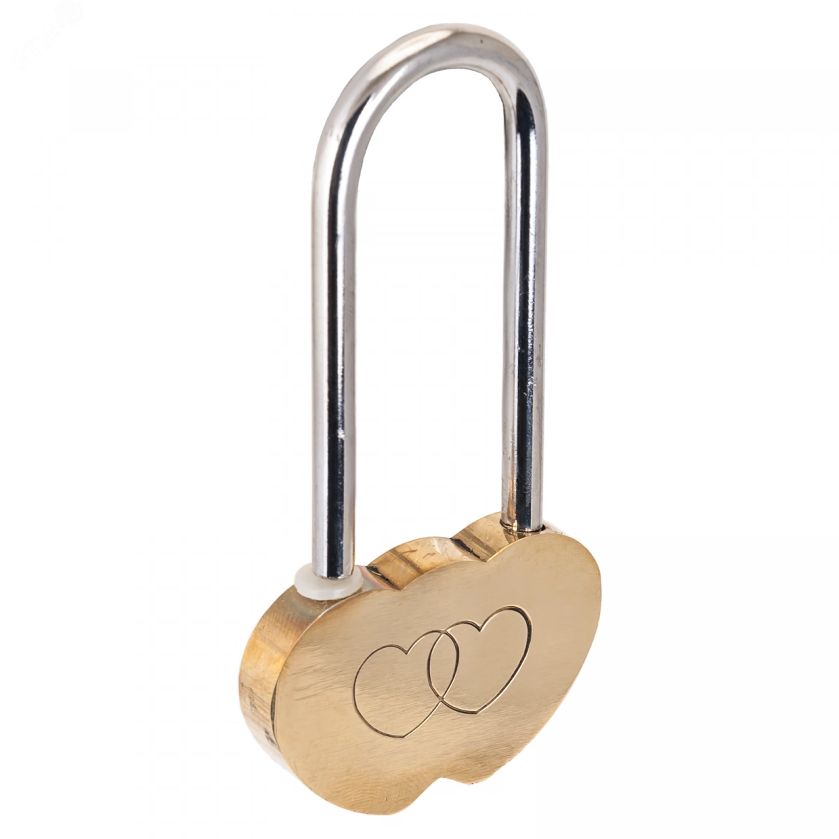 Замок сувенирный, навесной. Материал корпуса - латунь. Ширина корпуса - 47мм. Замок поставляется с открытой дужкой. Закрыть замок возможно только один раз. В комплекте идут 2 декоративных ключика.