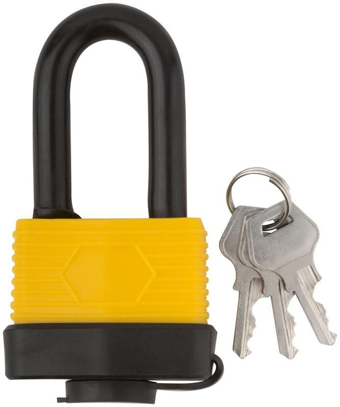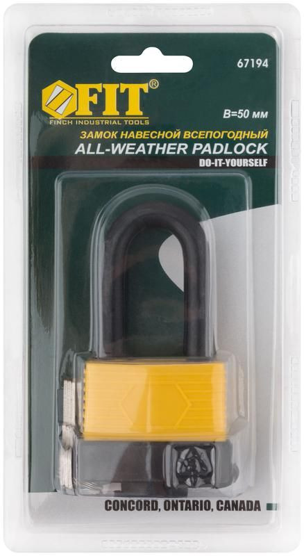 Полное описание: Замок навесной всепогодный 50х36мм длинная стальная дужка 9мм FIT 67194