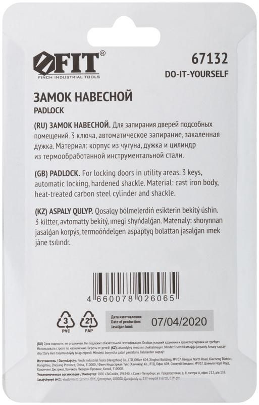 Полное описание: Замок навесной железный 32х28мм стальная дужка 5мм FIT 67132