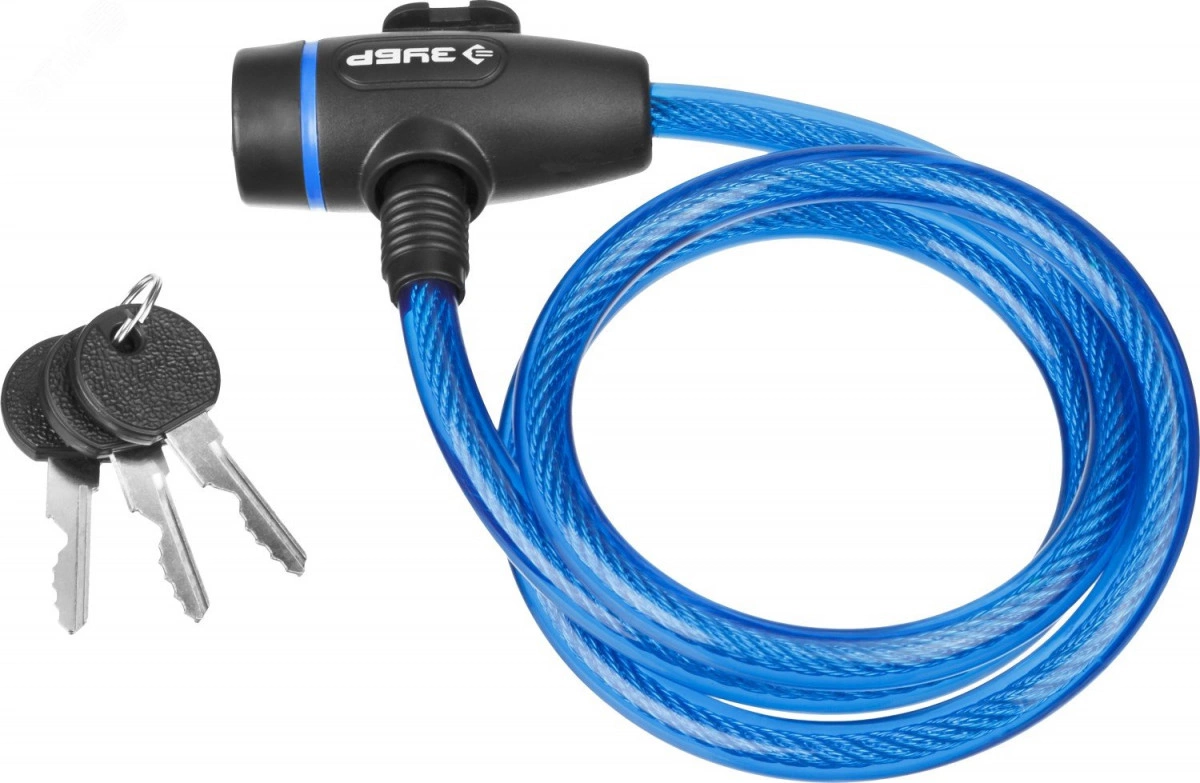Тросовые замки ЗУБР изготовлены из прочных высококачественных материалов и оснащены надежными запорными механизмами, благодаря чему гарантируют высочайшую степень защиты Вашего имущества. Тросовые замки – надежное противоугонное средство. С его помощью велосипед, скутер или мопед быстро и легко пристегиваются к любой опоре. А во время движения замок фиксируется на раме или стойке сиденья. Замок состоит из металлического троса в полимерной оболочке и запорного механизма.