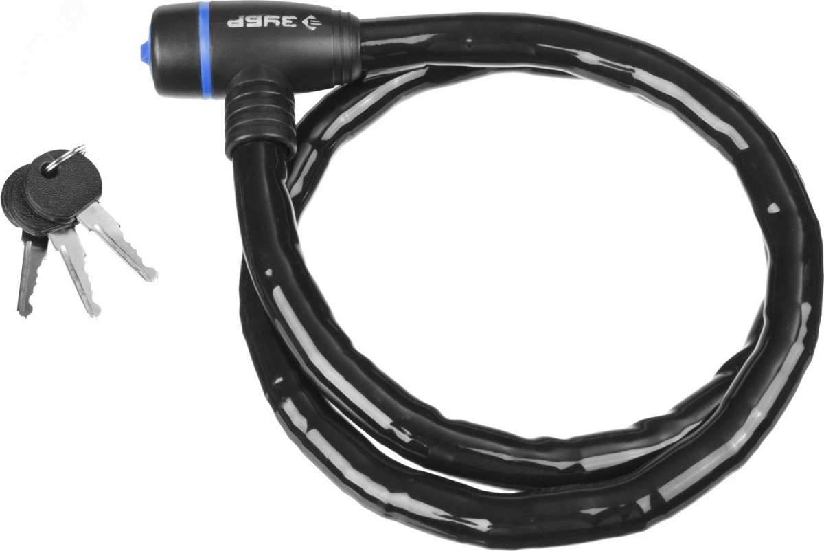Тросовые замки ЗУБР изготовлены из прочных высококачественных материалов и оснащены надежными запорными механизмами, благодаря чему гарантируют высочайшую степень защиты Вашего имущества. Тросовые замки – надежное противоугонное средство. С его помощью велосипед, скутер или мопед быстро и легко пристегиваются к любой опоре. А во время движения замок фиксируется на раме или стойке сиденья. Замок состоит из металлического троса в полимерной оболочке и запорного механизма.