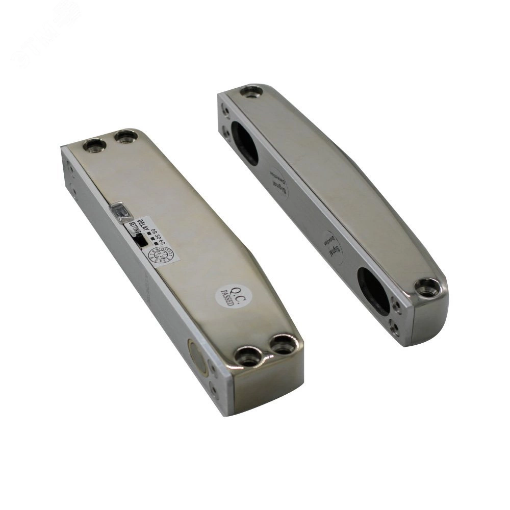 Соленоидный замок со встроенным датчиком состояния замка, накладной, нормально-закрытый, двухцветная светодиодная индикация, питание 12-24 В, потребляемый ток в режиме ожидания 110 мА, при пуске 1 А, нержавеющая сталь, -10...+50 градусов С, 145х25х38 мм, 800 г.