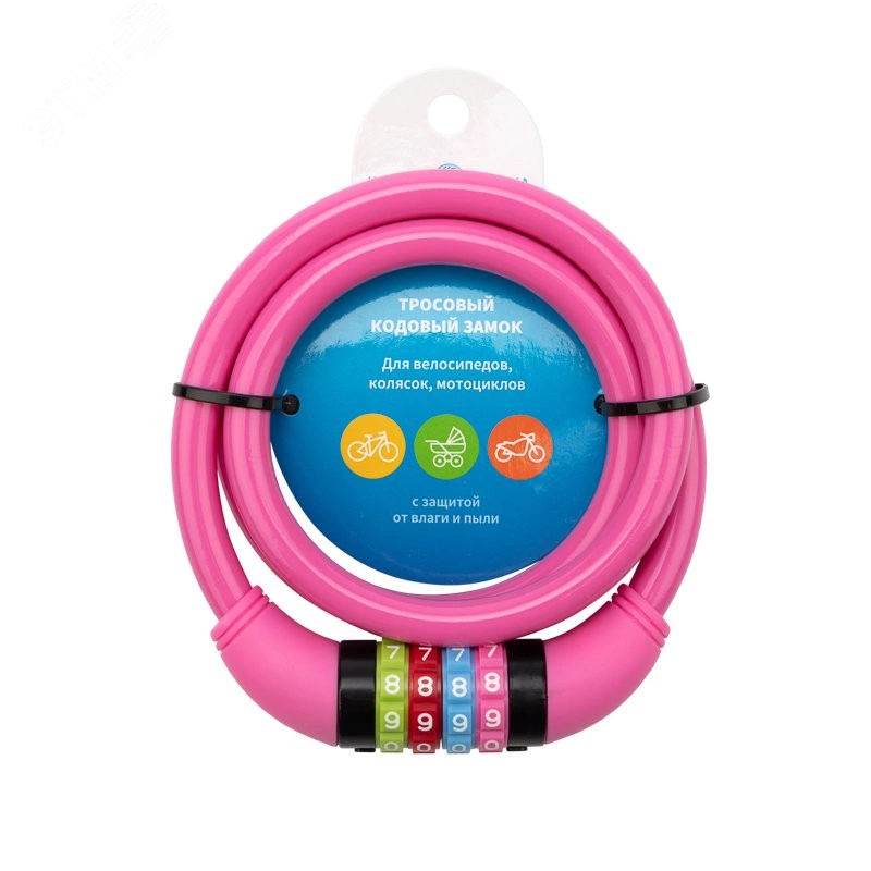 Замок тросовый кодовый взломостойкий для велосипедов и колясок 100 см розовый