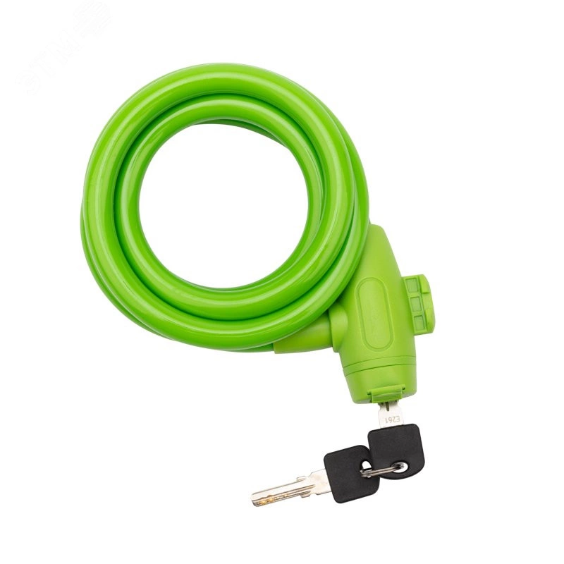 Замок тросовый взломостойкий для велосипедов и колясок с ключом 150 см зеленый