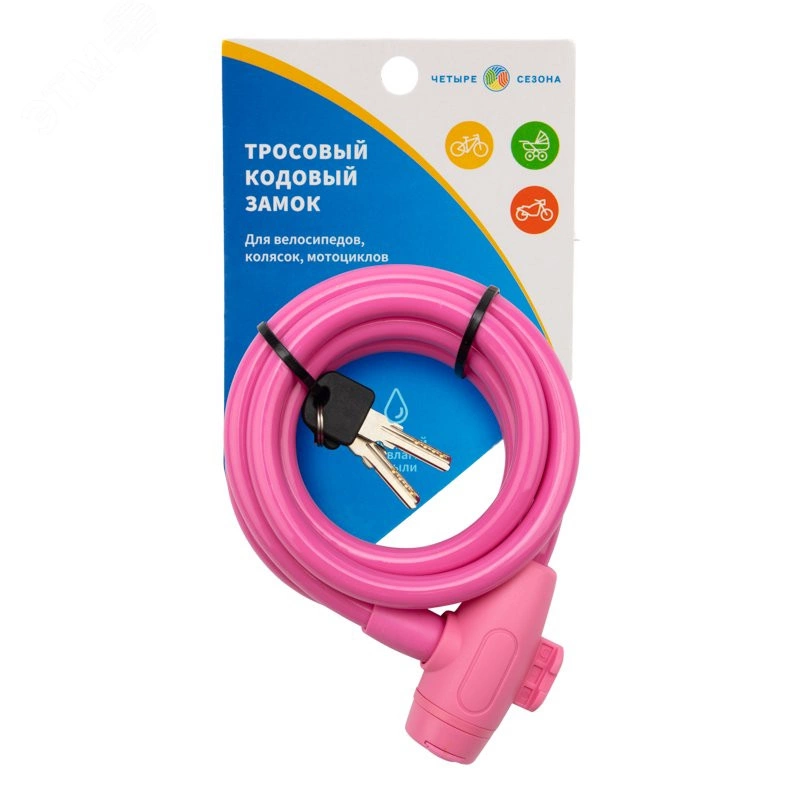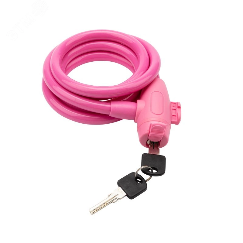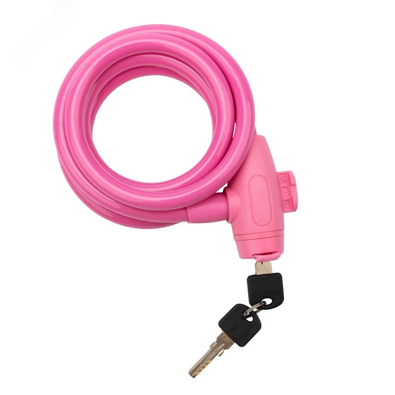 Замок тросовый взломостойкий для велосипедов и колясок с ключом 150 см розовый