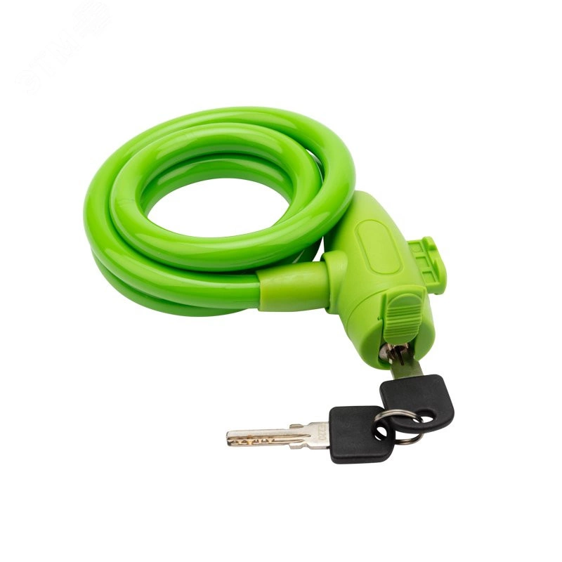 Замок тросовый взломостойкий для велосипедов и колясок с ключом 100 см зеленый