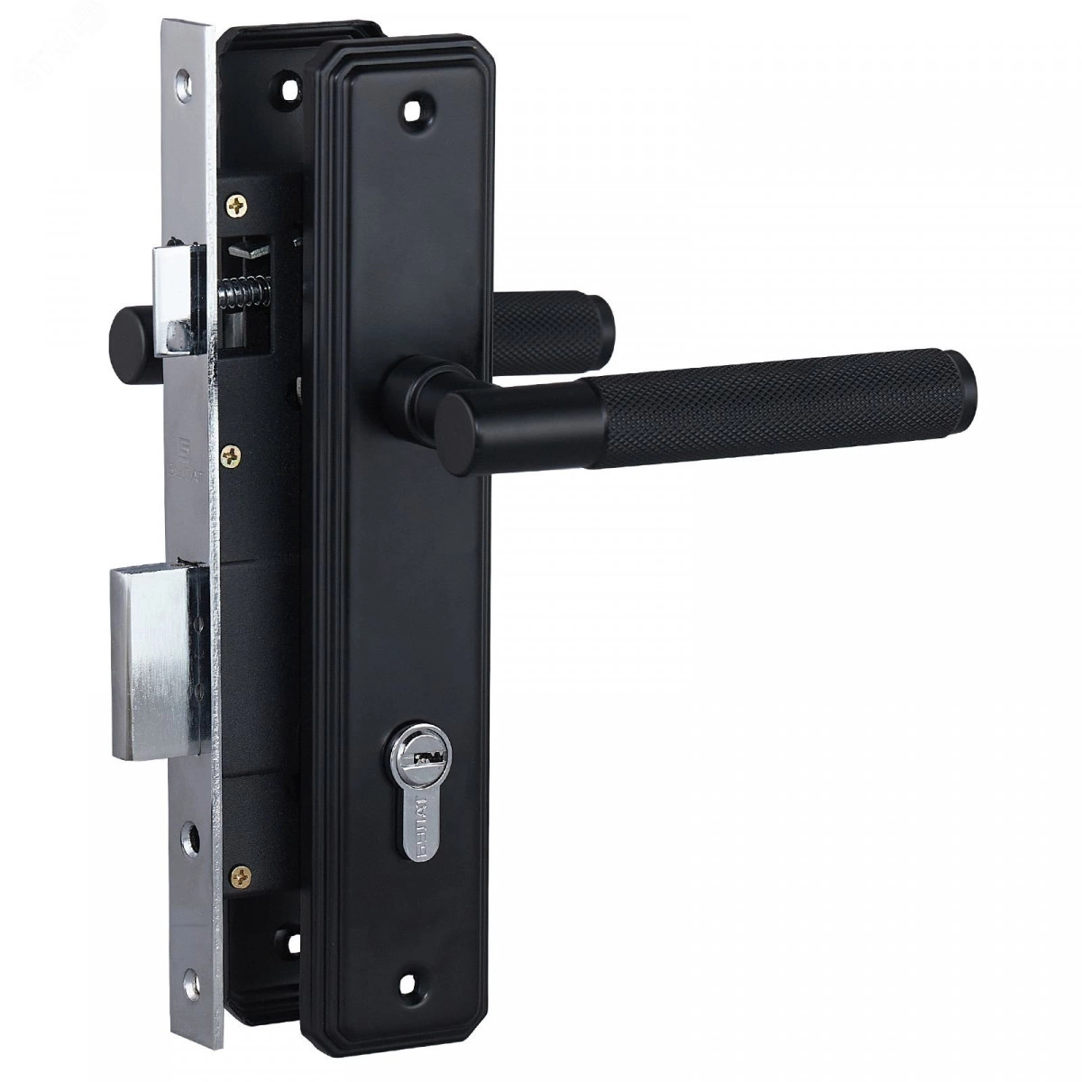 БУЛАТ ЗВ4-1.02.02 ФЕРОНА черный 5 перф.кл. Замок врезной с/руч (12). Замок врезной с ручками. Предназначен для установки в деревянные двери толщиной 35-45 мм, правого и левого открывания. Дверь может быть закрыта на защелку и открыта с помощью фалевой ручки при открытом засове замка. Один плоский стальной ригель размером 20х44мм. Универсальная защелка. Стальной корпус с подшипником, покрыт полимерной краской. Межосевое расстояние 85 мм. Удаление ключевого отверстия 45мм. Материал ручек - сталь Комплектация -латунный цилиндровый механизм 62мм, 5 перфоключей, ответная планка, винтовые стяжки.