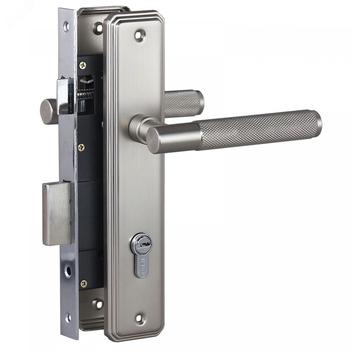 БУЛАТ ЗВ4-1.02.08 ФЕРОНА матовый никель 5 перф.кл. Замок врезной с/руч (12). Замок врезной с ручками. Предназначен для установки в деревянные двери толщиной 35-45 мм, правого и левого открывания. Дверь может быть закрыта на защелку и открыта с помощью фалевой ручки при открытом засове замка. Один плоский стальной ригель размером 20х44мм. Универсальная защелка. Стальной корпус с подшипником, покрыт полимерной краской. Межосевое расстояние 85 мм. Удаление ключевого отверстия 45мм. Материал ручек - сталь. Комплектация -латунный цилиндровый механизм 62 мм, 5 перфоключей, ответная планка, винтовые стяжки.
