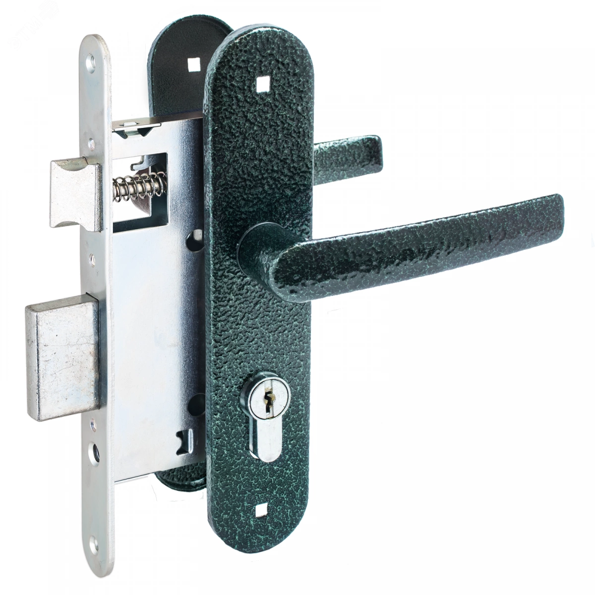 Замок врезной Птимаш ЗВ4-308 зеленый муар СТЯЖКИ с/руч